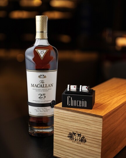 Chocrón Joyeros y The Macallan presentan una iniciativa única que aúna tradición, excelencia y legado, pilares de ambas firmas. 50 botellas de “The Macallan 25 x Chocrón” Edición Limitada y numerada: una pieza exclusiva que celebra la unión entre dos referentes del lujo dirigida a coleccionistas y aquellos que buscan piezas verdaderamente singulares. Cada botella incluye unos gemelos artesanales de rubíes, creados en exclusiva por Chocrón Joyeros; un guiño a la identidad cromática y simbólica de The Macallan. De disponibilidad limitada y exclusiva en boutiques Chocrón de Madrid, Puerto Banús y Ceuta, “The Macallan 25 x Chocrón”es el primer paso de una colaboración que irá más allá, dando lugar también a experiencias de alto valor para los más exigentes.